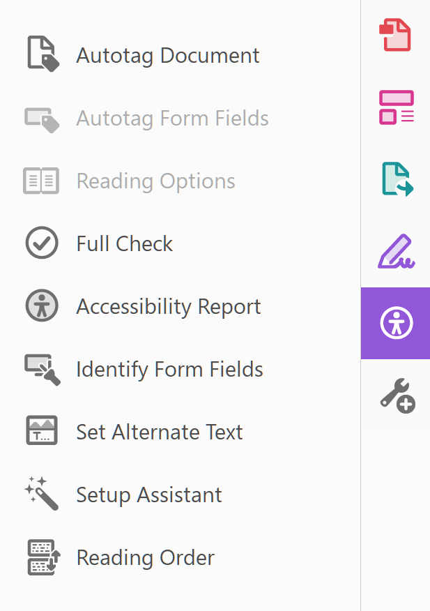 Below are some of the accessibility Tools that you will use regularly while reviewing and repairing PDF accessibility.