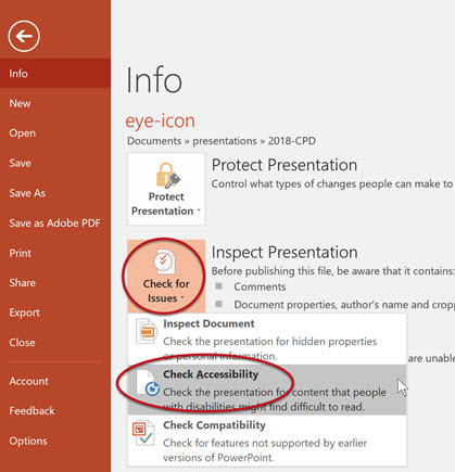 PowerPoint presentations usually include images, and these images need equivalent alternative text.