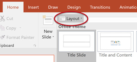 Although you can change the layout of a slide at any time, it is usually easiest to choose your layout when creating a new slide. You can add a new slide from the or tab. If you choose the, PowerPoint will usually create a new slide with the same layout as the currently-selected slide.