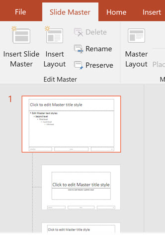 It is possible to make changes to all slides within a presentation, like changing the text size of all slide titles. You can also make changes to a specific slide layout, or even create new custom layouts. All of these changes are possible in the Slide Master view. This view allows you to create accessible layouts that meet the needs of the presentation while maintaining a proper heading structure and reading order.